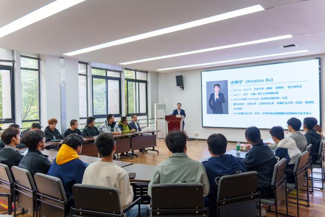 在交流互动环节,参会学生围绕实习机会获取、在校学习重点选择等问题踊跃提问。许桦宁导师秉持负责的态度,运用行业专业知识和实践经验,针对学生提出的问题予以细致解答。