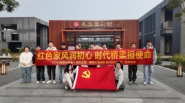 11月29日上午,支部成员赴成都市新都区天府家风馆开展“红色家风润初心时代桥梁担使命”主题党日活动。抵达场馆后,全体成员佩戴党徽,在馆前广场以支部旗为背景整齐列队合影,定格此次家风学习的珍贵起点。