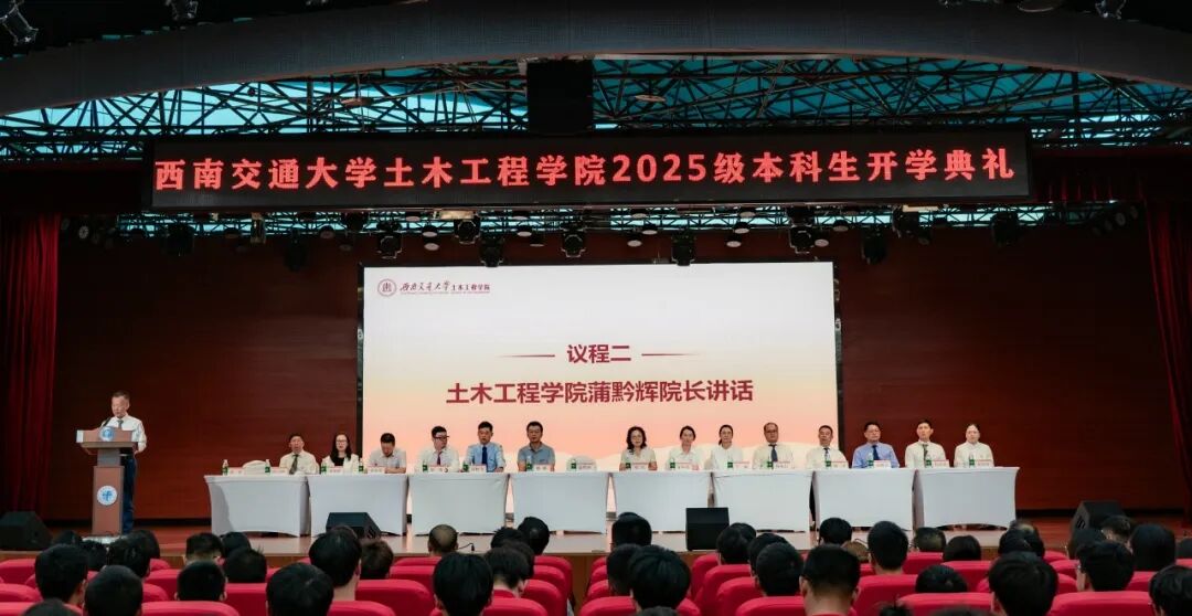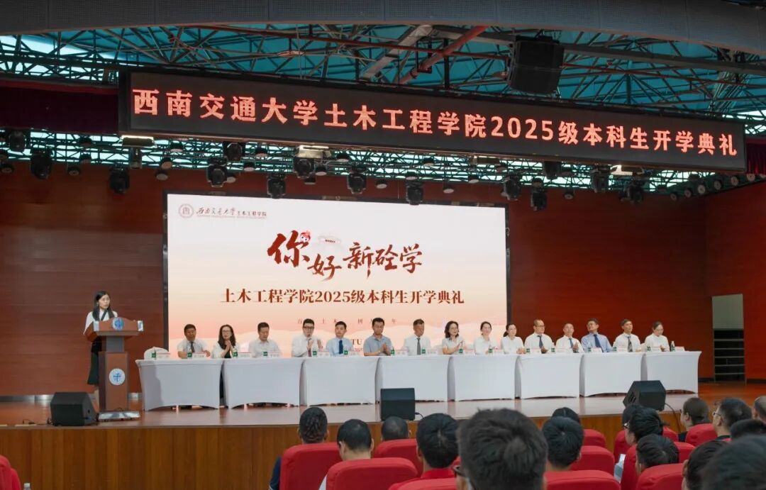秋风吹拂,岁月如诗。为庆祝awc万象城体育679名来自五湖四海的新生跨越山河,汇聚交大,9月8日晚,awc万象城体育awc万象城体育在犀浦校区大学生活动中心隆重举行了awc万象城体育2025级本科生开学典礼。awc万象城体育院长蒲黔辉,党委书记郑江,副院长陈嵘,党委副书记兼副院长车小洁,副院长徐腾飞、于丽,教学主管郭瑞,道路与铁道工程系主任杨荣山,桥梁工程系主任李永乐,岩土工程系主任杨涛,建筑工程系副主任刘艳辉,地下工程系副主任蒋雅君,陆地交通灾害防治技术研究中心执行主任庄卫林,流体力学教研室主任杨庆华,图学及BIM研究所副主任赵莉香出席典礼,学院专业老师、2025级本科班导师、全体辅导员们共同到场观礼。典礼由党委副书记刘萍主持。