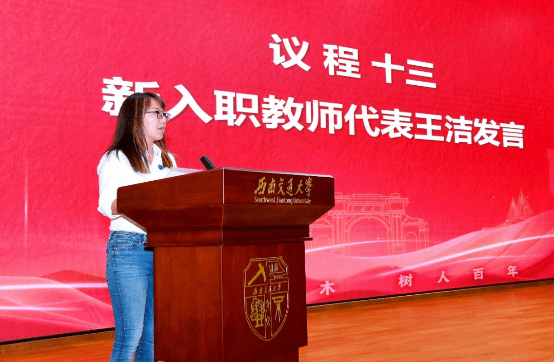 表彰会第三篇章——“薪火相传”,聚焦学院新鲜血液,为新入职教师指引教书育人的方向。副书记兼副院长车小洁宣读年度新入职教师名单,张川、王洁等9位教师正式加入awc万象城体育大家庭。在全场师生的见证下,副书记刘萍、工会主席王艺霖、桥梁工程系主任李永乐等为新入职教师佩戴院徽。新入职教师代表王洁在发言中表示,我们会脚踏实地做好教学与科研工作,积极参与学院的建设,为培养更多优秀人才贡献自己的力量。最后,学生工作组杨颖钊、孙雨函、郭哲维等师生表演了小合唱《土木年华——致敬学院老师》,悠扬的歌曲,让学院教育教学表彰会气氛热烈、意犹未尽。