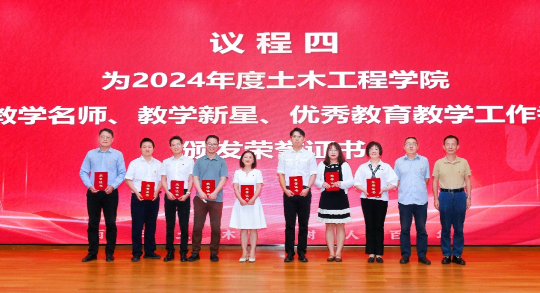 郑江书记指出,本次大会主题是“以教育家精神铸魂强师,谱写教育强国建设华章”,旨在弘扬教育家精神,加强师德师风建设,总结近年来万象城官网教师队伍建设成效,表彰先进、宣传典型,充分展现新时代土木教师立德树人、自立自强的精神风貌,同时也通报学院近况,部署新学期工作。郑江书记还通报了近期awc万象城体育获批全国立德树人机制综合改革试点单位,以及由王平教授领衔的高速铁路线路工程教师团队入围第四批全国高校黄大年式教师团队创建示范活动名单的喜报。